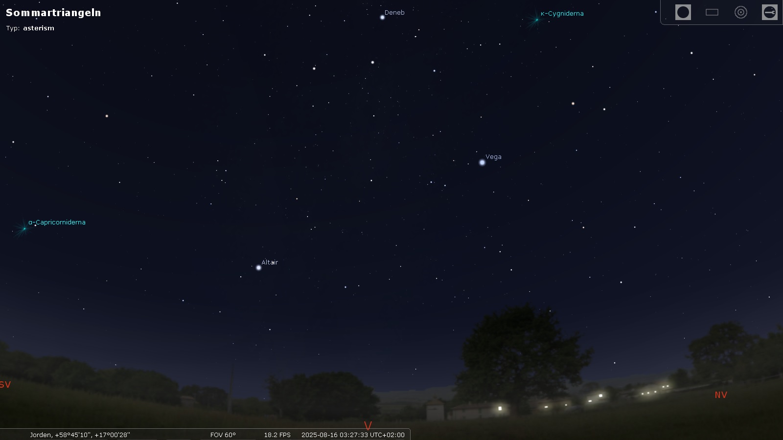 Man kommer eventuellt att hinna få en glimt av Merkurius i gryningen en liten bit ovanför horisonten i sydöst, strax innan solen går upp och med sitt sken tar över hela den himmelska scenen. Då har vi från ungefär mitten av november för varje dygn kunnat se Merkurius följa kröken på sin bana runt solen. Det är intressant det där. Vid ett enskilt observationstillfälle ser ju planeterna ut att i det närmaste bara hänga där, långsamt försvinner de i någon riktning, då jorden för varje sekund snurrar runt sin egen axel. Men går man in i ett sådant program som Stellarium och bläddrar fram dygnen men låter klockslaget vara detsamma ser man tydligt t.ex. Merkurius progression i sin böjda bana runt solen. Sådant är svårt att föreställa sig utan hjälpmedel. Ett annat bra sådant är webbplatsen Meteorshowers.org som förstås primärt är till för att följa meteorregn, men där man i vilket fall får en animerad illustration av vårt solsystem som det ser ut från rymden sett, och med Vintergatans lysande band av stjärnor som förtrollande fond.